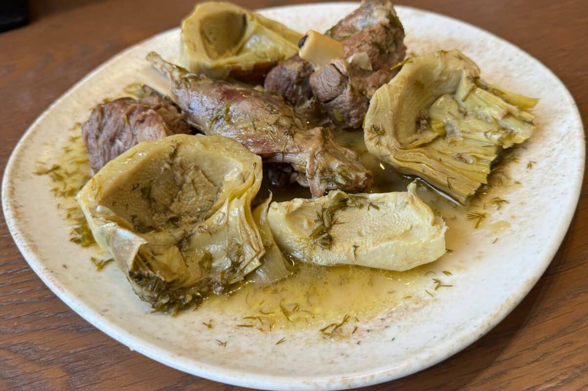 Don’t miss the slow-cooked lamb “ofto,” mutton in greaseproof paper, or staka with eggs. Try the goat tsigariasto, mushrooms with stamnagathi, beef stifado, and a variety of grilled meats. The wood-fired bread with sea salt and seasonal “agourolado” olive oil offers a perfect start to any meal.